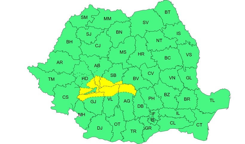 Vizate sunt zona montană a județelor Gorj, Vâlcea, Argeș, Hunedoara, Alba și Sibiu, unde va ploua și se vor acumula cantități de apă de 25…30 l/mp și izolat de peste 40 l/mp.