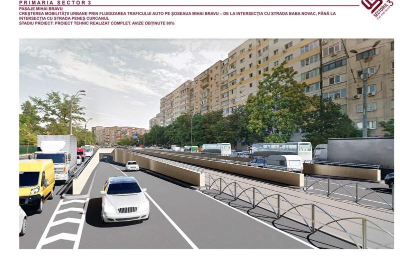 ”Având în vedere traficul intens pe Șos. Mihai Bravu în zona intersecțiilor cu str. Baba Novac – str. Dristorului – B-dul Camil Ressu – Calea Vitan, zone cu risc major de producere a accidentelor rutiere, Primăria Sectorului 3 își propune realizarea obiectivului de investiții Creșterea mobilității urbane prin fluidizarea traficului auto pe Șoseaua Mihai Bravu (de la intersecția cu str. Baba Novac până la str. Peneș Curcanul), proiect care presupune: construirea a două pasaje rutiere subterane pe direcția Șoselei Mihai Bravu la intersecțiile: Șos. Mihai Bravu – Calea Dudești – B-dul Camil Ressu și Șos. Mihai Bravu – Calea Vitan; Construirea unui pasaj pietonal subteran din dreptul stației de tramvai Laborator; Relocarea semaforului, respectiv a trecerii de pietoni de pe șos. Mihai Bravu (intersecție cu str. Baba Novac); Crearea a două benzi de circulație pe Calea Dudești în vederea măririi spațiului de stocare la semafor și a creșterii capacității de preluare a fluxurilor de trafic din intersecția Șos. Mihai Bravu – Calea Dudești – B-dul Camil Ressu spre Calea Dudești”, au explicat reprezentanții Primăriei pe pagina de Facebook.