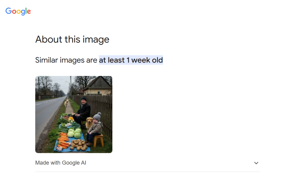 Fotografia este generată de inteligența artificială. La o căutare pe Google Images, la secțiunea „despre această fotografie” este menționat faptul că aceasta este făcută cu Google AI.