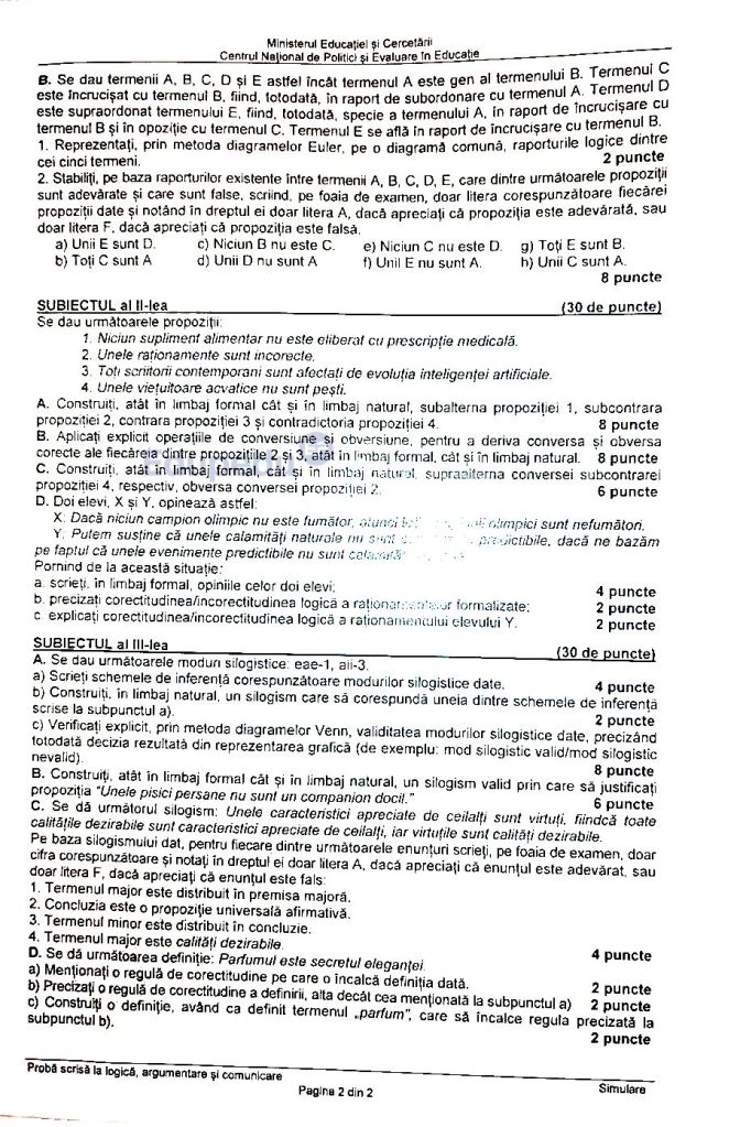 Simulare BAC 2025. Ce subiecte au primit elevii de clasa a XII-a la Logică