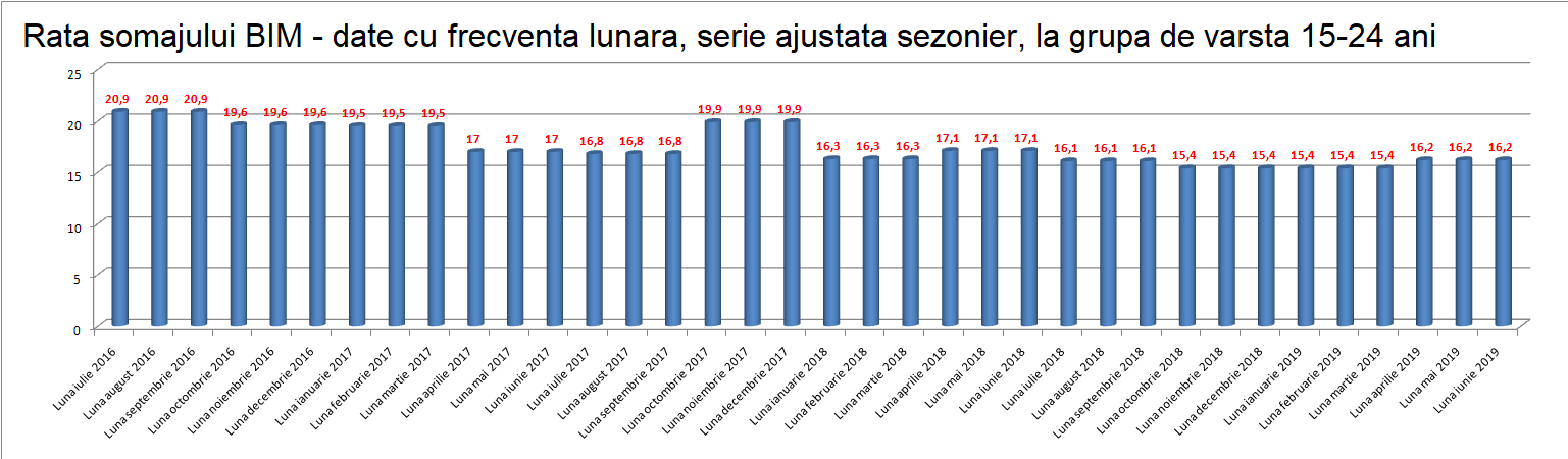 În luna august 2019, rata şomajului a coborât la 3,8% în august, nivel la care fusese și în urmă cu două luni, potrivit datelor transmise luni de Statistică. Potrivit INS, numărul şomerilor (în vârstă de 15-74 ani) din luna august a anului 2019 a fost de 343.000 persoane, cei mai mulți fiind bărbați. Din păcate, rata șomajului în rândul tinerilor (15-24 ani) rămâne la peste 16%, după ce din septembrie 2018 coborâse sub acest prag.