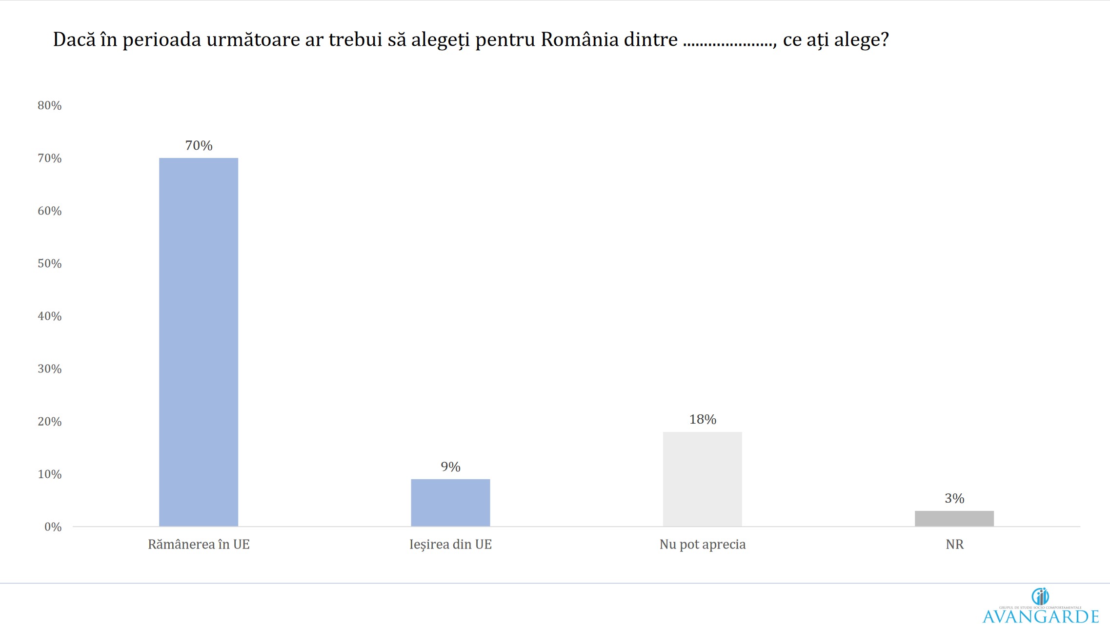 70% dintre cei intervievați sunt pentru rămânerea în UE și doar 9% optează pentru un RoExit.