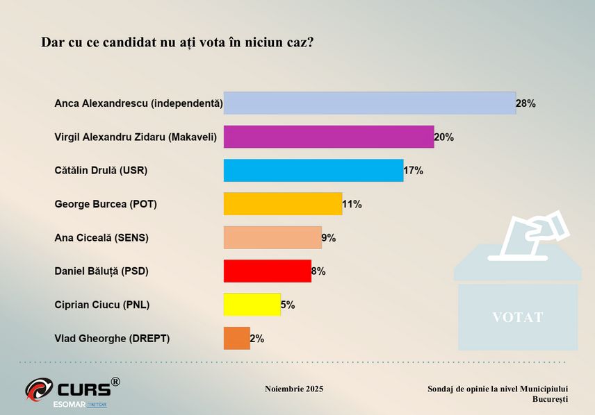 Sondaj CURS: Ce răspund bucureștenii întrebați cu ce candidat nu ar vota în niciun caz