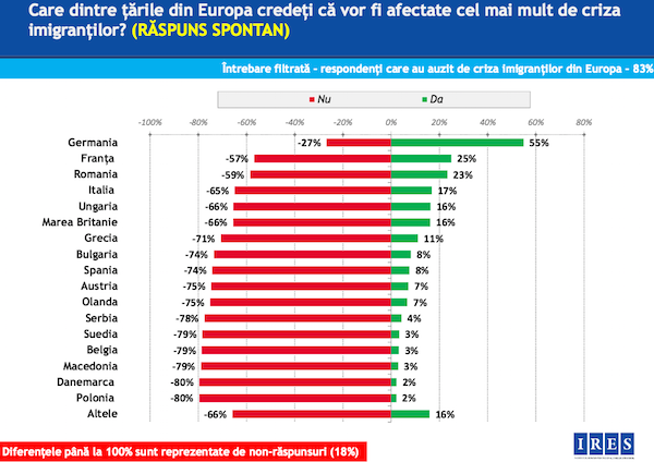83% dintre persoanele participante la studiul IRES au declarat ca au auzit despre „criza imigrantilor de la granitele Uniunii Europene”.