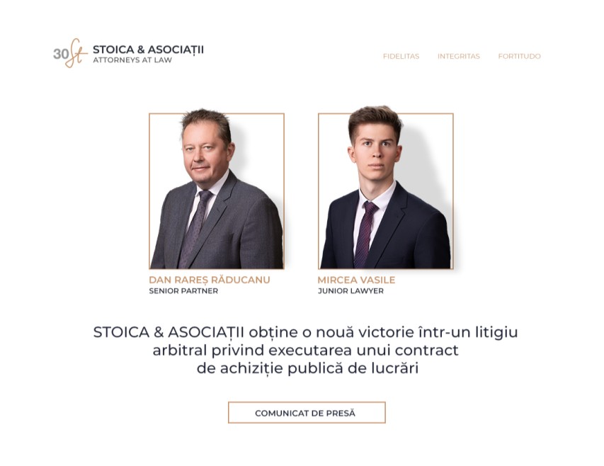 STOICA & ASOCIAȚII obține o nouă victorie într-un litigiu arbitral privind executarea unui contract de achiziție publică de lucrări
