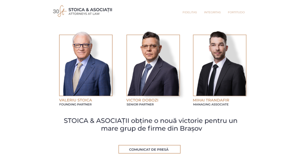 Echipa de avocaţi din cadrul STOICA & ASOCIAȚII, formată din Valeriu Stoica (Founding Partner), Victor Dobozi (Senior Partner) și Mihai Trandafir (Managing Associate), a obținut recent o victorie importantă pentru clientul său, asociat al unui grup de firme din Brașov, în cadrul unui proces penal în care au fost implicați peste 80 de inculpați.