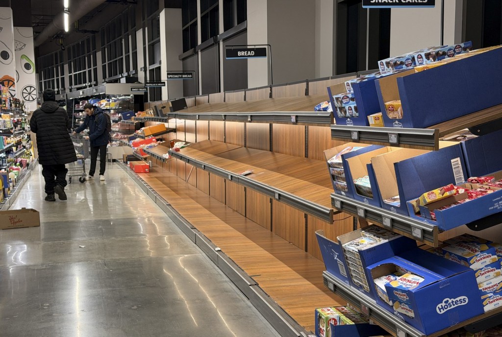 În urma apelului lansat sâmbătă de secretarul DHS, numeroase supermarketuri din statele aflate sub cod roșu au raportat rafturi golite de alimente de bază și cozi interminabile la stațiile de alimentare.