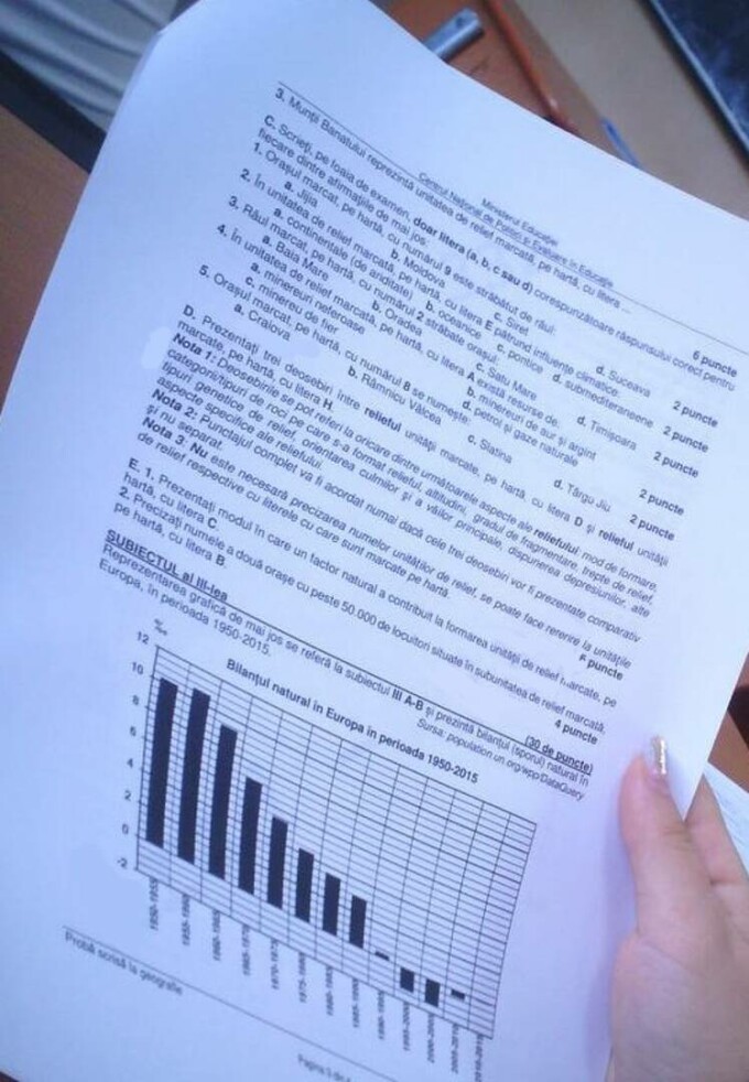 Subiectele la geografie la BAC de anul trecut
