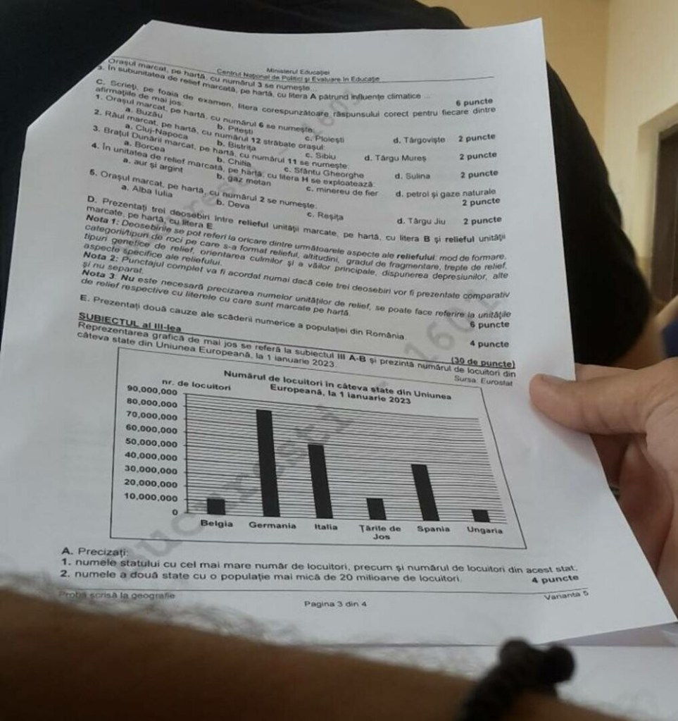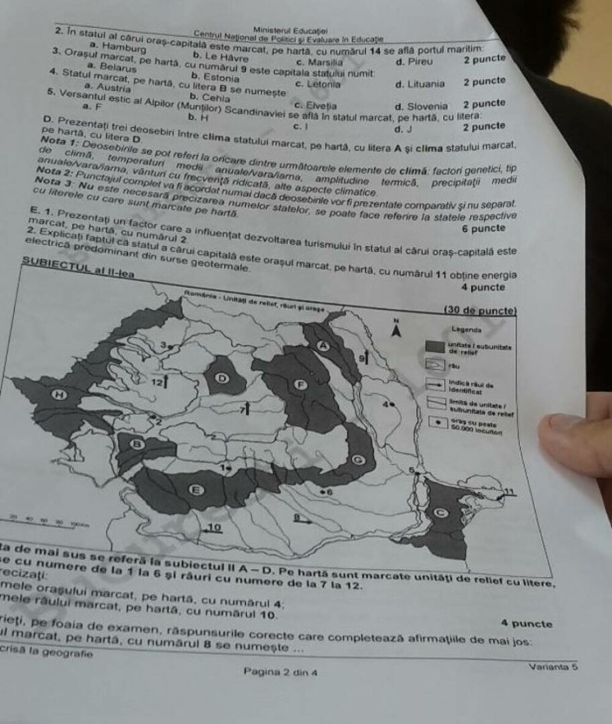 UPDATE 12.15: „Subiectele au fost accesibile, dar mai grele decât la simulare, așa consider eu. Comparativ cu ultimii 5 ani, subiectele au fost cam de aceeași dificultate. Au fost câteva capcane, elevii trebuiau să facă deosebire între cauză și consecința, iar de asemenea trebuiau să cunoască termeni precum bilanț migratoriu”, a declarat, pentru HotNews, profesorul Răzvan Vișan, de la liceul privat Atlas.