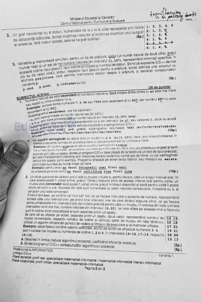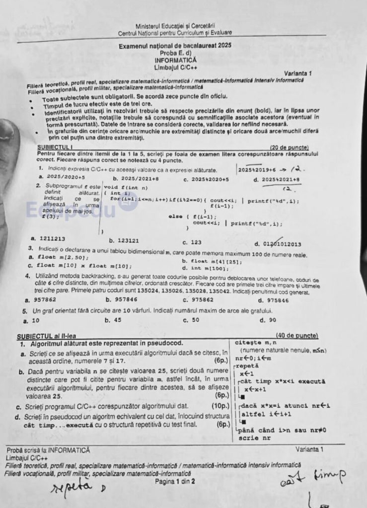 UPDATE 13:38: Subiectele la Informatică BAC 2025 C/C++, pentru specializarea Matematică-Informatică au fost publicate de Edupedu:
