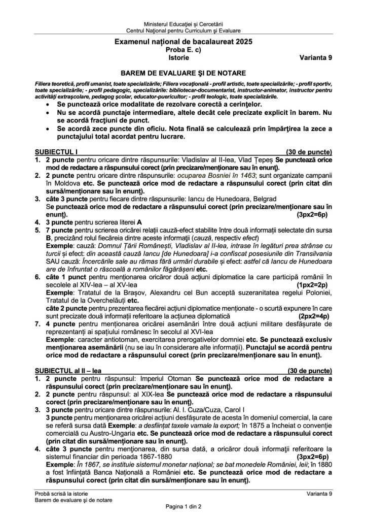 - Ministerul Educației a publicat, la ora 15:00, subiectele și baremele de evaluare la Istorie, la BAC 2025, sesiunea august, conform procedurii oficiale, pe site-ul dedicat.