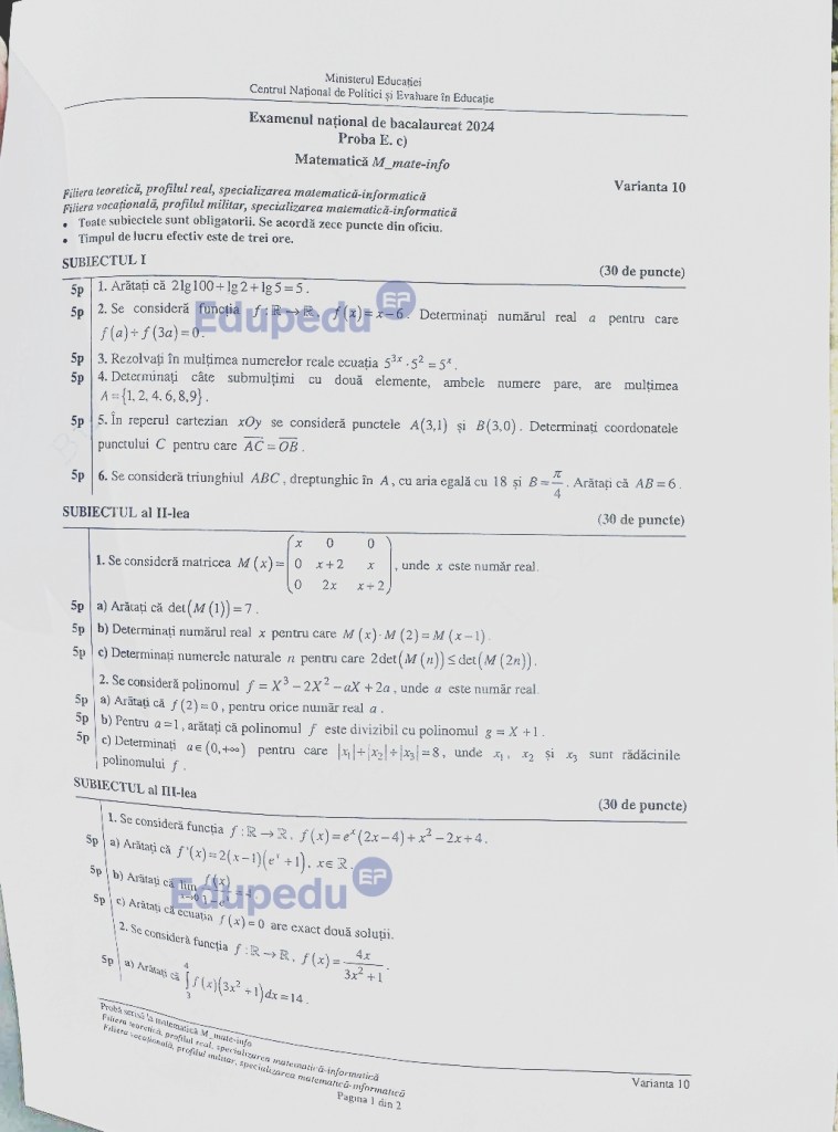 Subiecte Matematică BAC 2024 – Mate-Info: