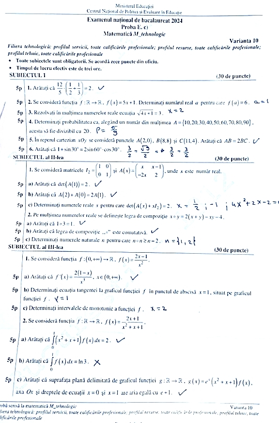 Subiecte Matematică BAC 2024 – Tehnologic: