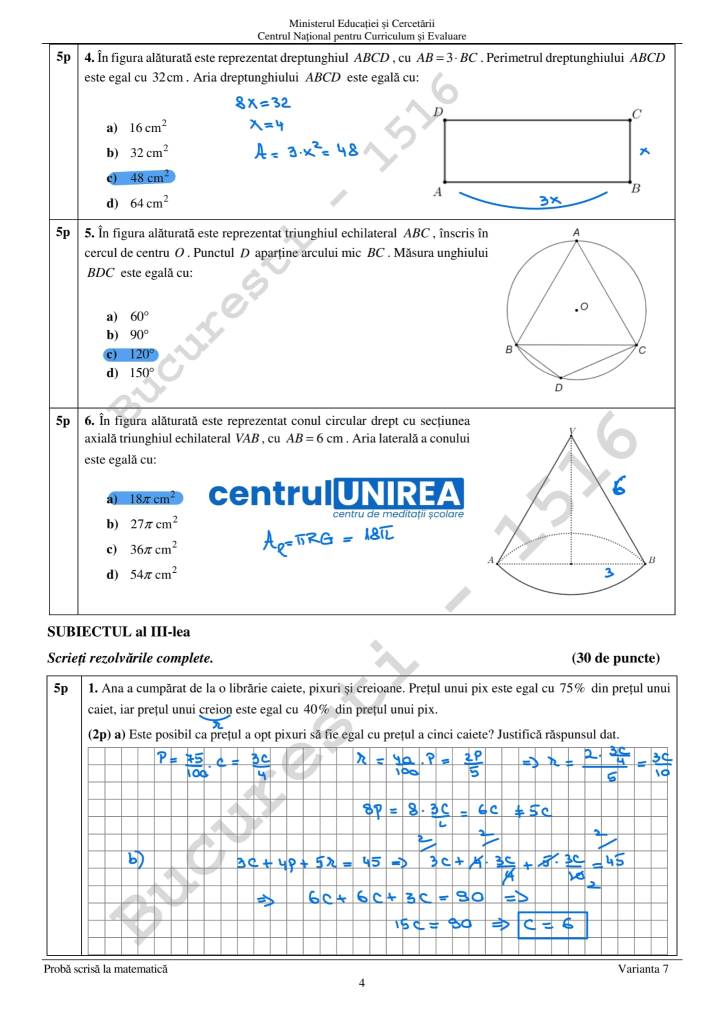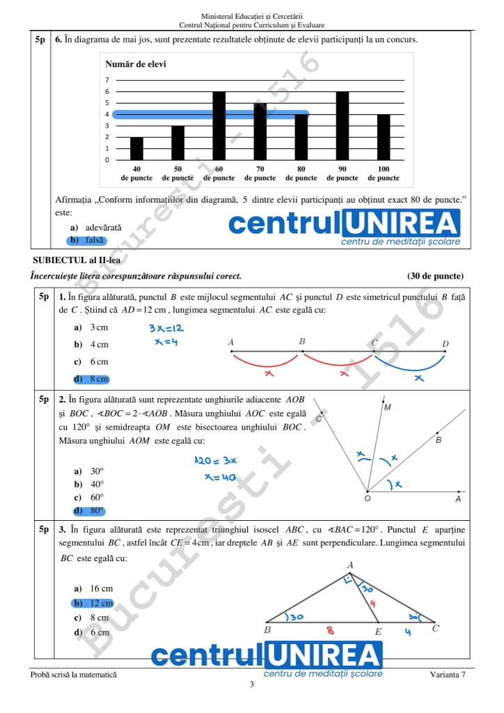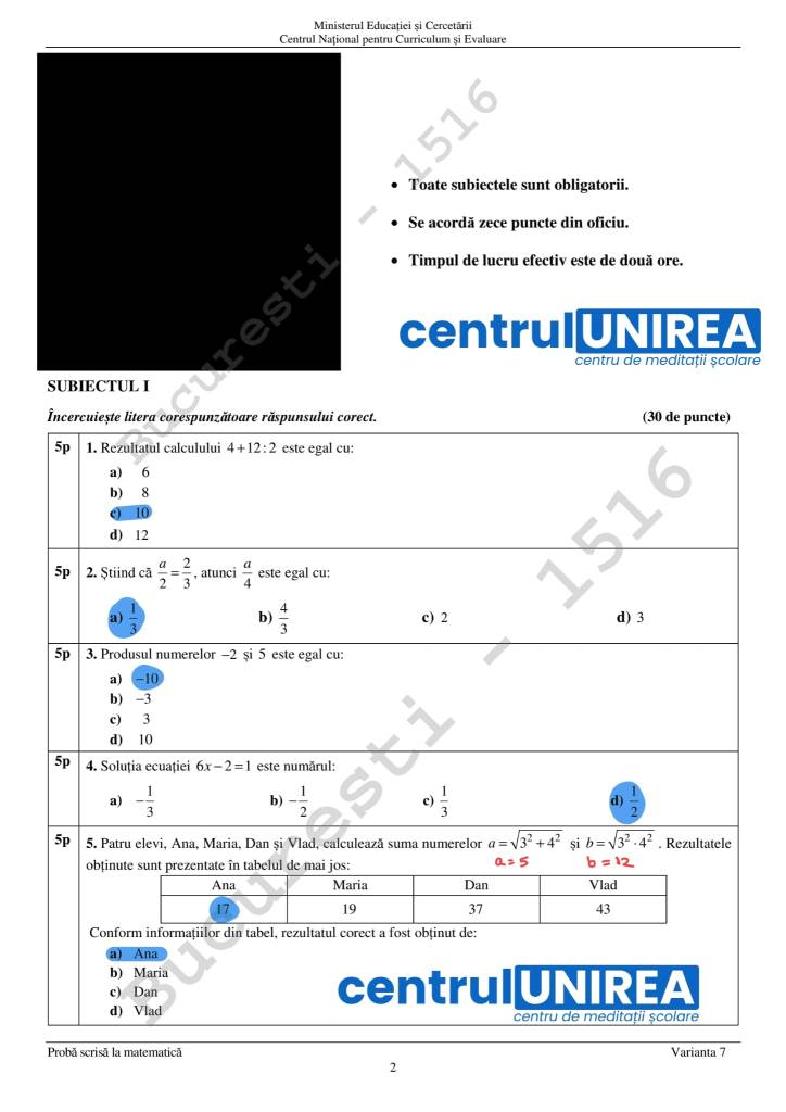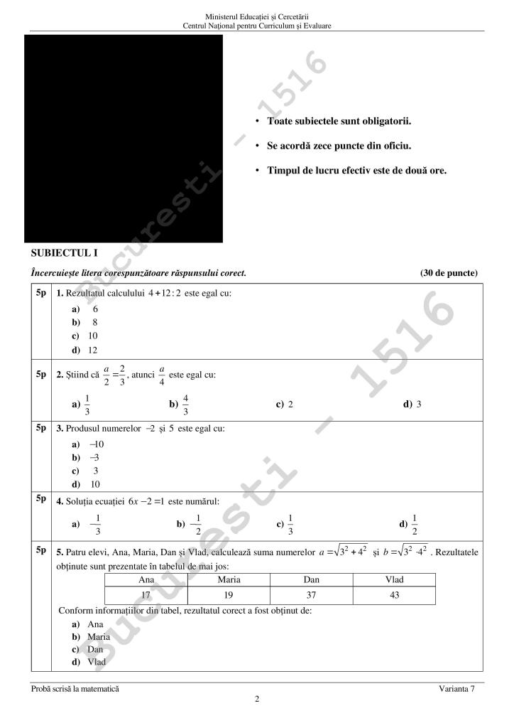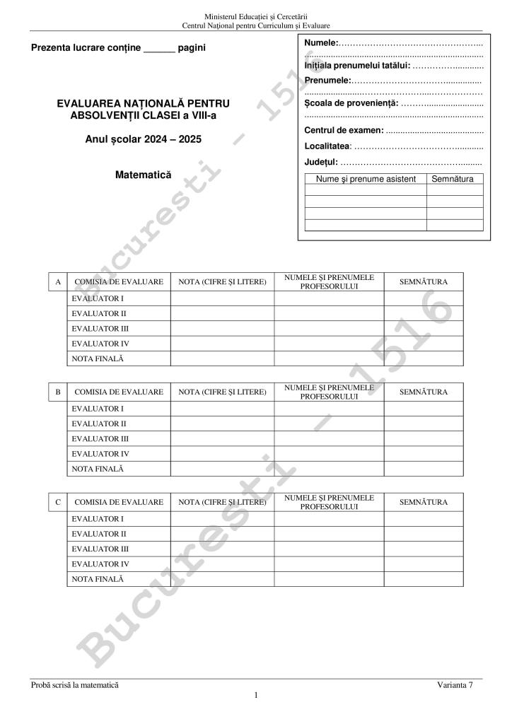 Subiectele au scrise pe ele și numărul centrului de evaluare, fiind vorba despre unul din București.