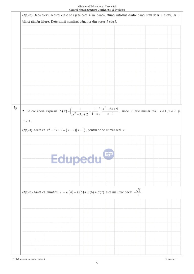 Barem Matematică Simulare Evaluarea Națională 2026