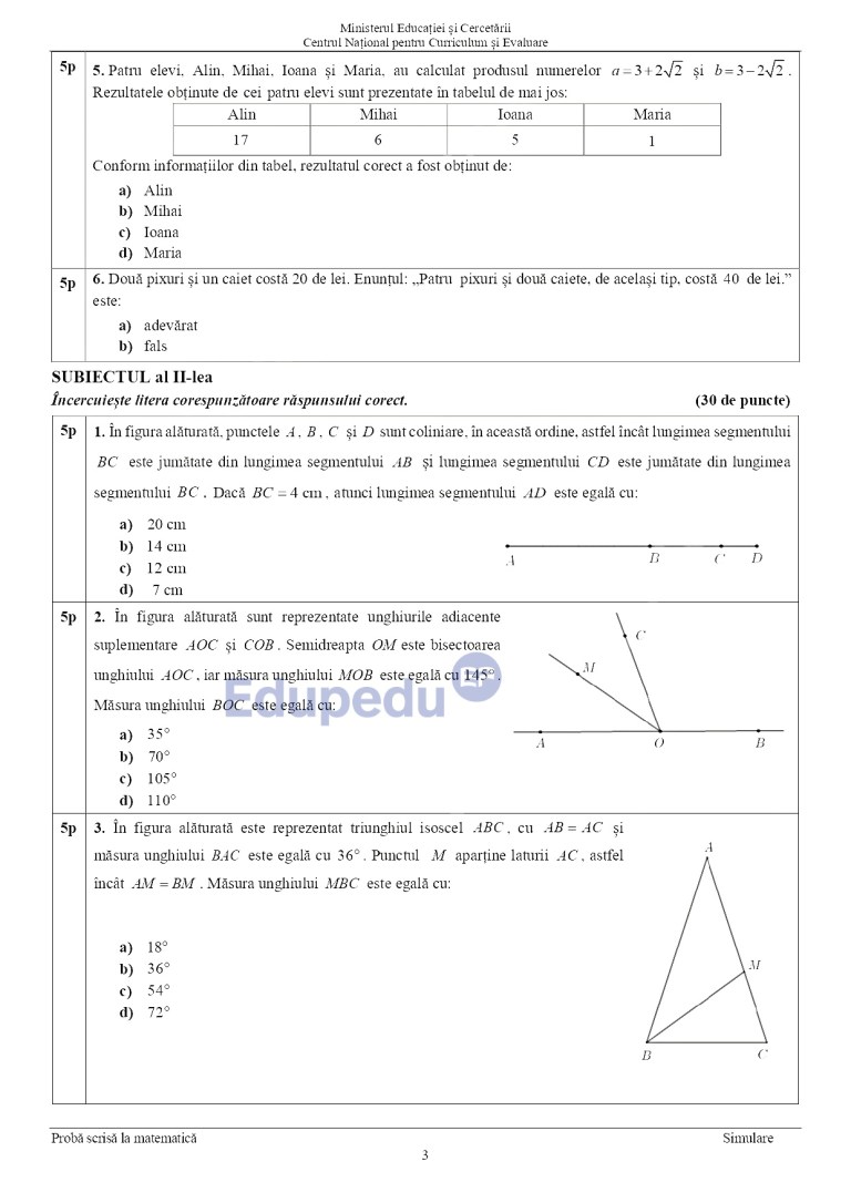 Vedeți în galeria de mai jos subiectele la matematică la Simulare la Evaluarea Națională pentru clasa VIII-a: