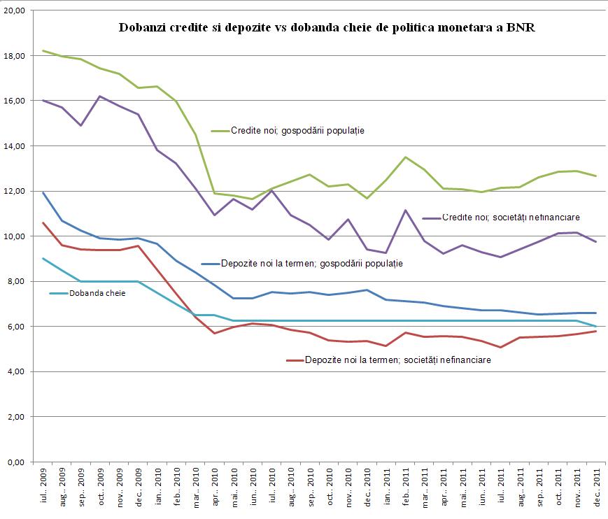 Here we go. Una dintre dorintele bancherilor centrali de la Bucuresti este ca lichiditatea din sistem sa se duca in creditarea companiilor. O tinta la fel de urmarita este ca reducerea dobanzii de politica monetara sa se transmita naibii si pe canalul bancilor comerciale, iar acestea sa taie la randul lor din costul creditului. O a treia tinta este “mutarea” creditului din valuta in lei din ratiuni perfect de inteles din punct de vedere al stabilitatii si prudentialitatii. In ce masura au fost aceste tinte atinse, vom vedea mai jos, scrie Dan Popa pe blogul Hymerion.ro