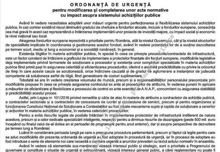 Ordonanța de Urgență publicată miercuri, 12 februarie, în Monitorul Oficial aduce, pe parcursul a 9 pagini, multiple modificări de impact asupra legislației achizițiilor publice.