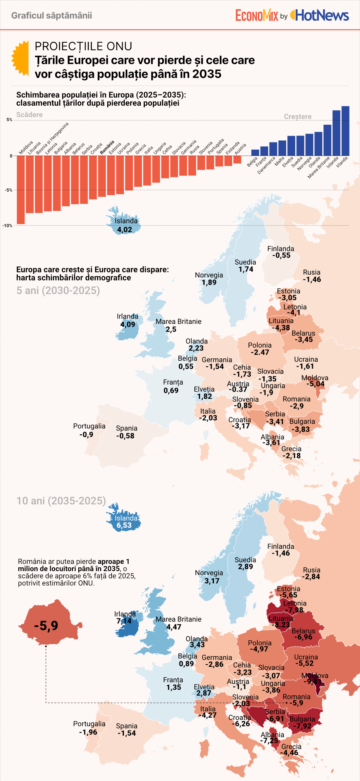 INFOGRAFIE: Țările care vor pierde cei mai mulți locuitori în următorii 10 ani