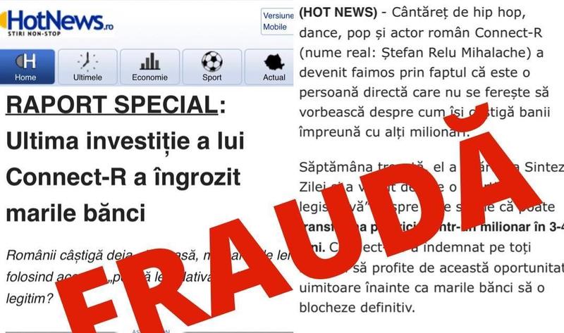 - „Directoratul a observat în ultimele zile mai multe tentative de fraudare a utilizatorilor din România prin site-uri capcană care găzduiesc false oportunități de investiții. Pentru a oferi o aură de veridicitate informației, atacatorii se folosesc de identitatea vizuală a unor instituții de presă. La fel se întâmplă și în ultimul caz întâlnit, în care atacatorii se folosesc de imaginea HotNews.ro. Echipa Directoratului a aplicat imediat procedurile de suspendare a site-ului fraudulos, care nu este găzduit în România.”, a precizat Mihai Rotariu, purtătorul de cuvânt al DNSC.