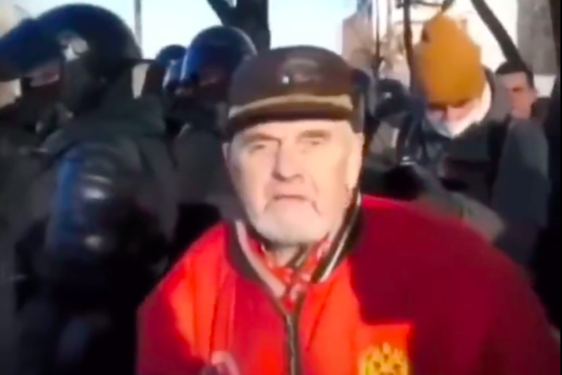 „Toata lumea râde de noi. Poporul rus a devenit “bâdlă” (cuvânt specific din limba rusă, echivalentul la „bădărani” din limba română). Luaţi-mă pe mine! Din noi, din voi au făcut nişte proşti. Dar nu cedaţi!”, s-a adresat bărbatul angajaţilor din instituțiile de forţă care veniseră să asigure ordinea la un protest în Rusia.