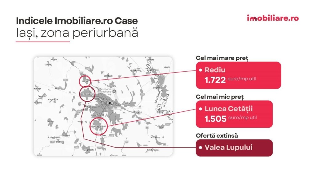 În comuna Rediu prețurile ating cel mai înalt nivel din zona periurbană – 1.722 euro/mp util, conform Indicelui Imobiliare.ro Case, dar oferta este extrem de limitată.