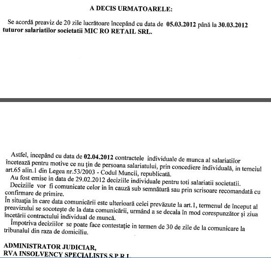 Vezi in atasament lista creditorilor Mic.Ro Retail.srl