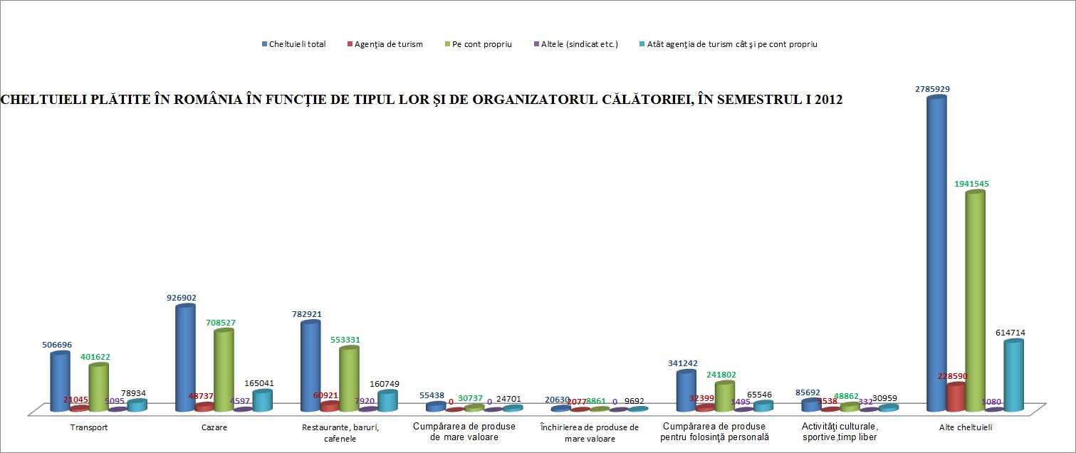 IIn anul 2011, rezidentii romani au cheltuit aproximativ 5152,3 mil lei pentru calatorii de vacanta si afaceri, din care 74,4% pentru cele care au vizat destinatii interne.