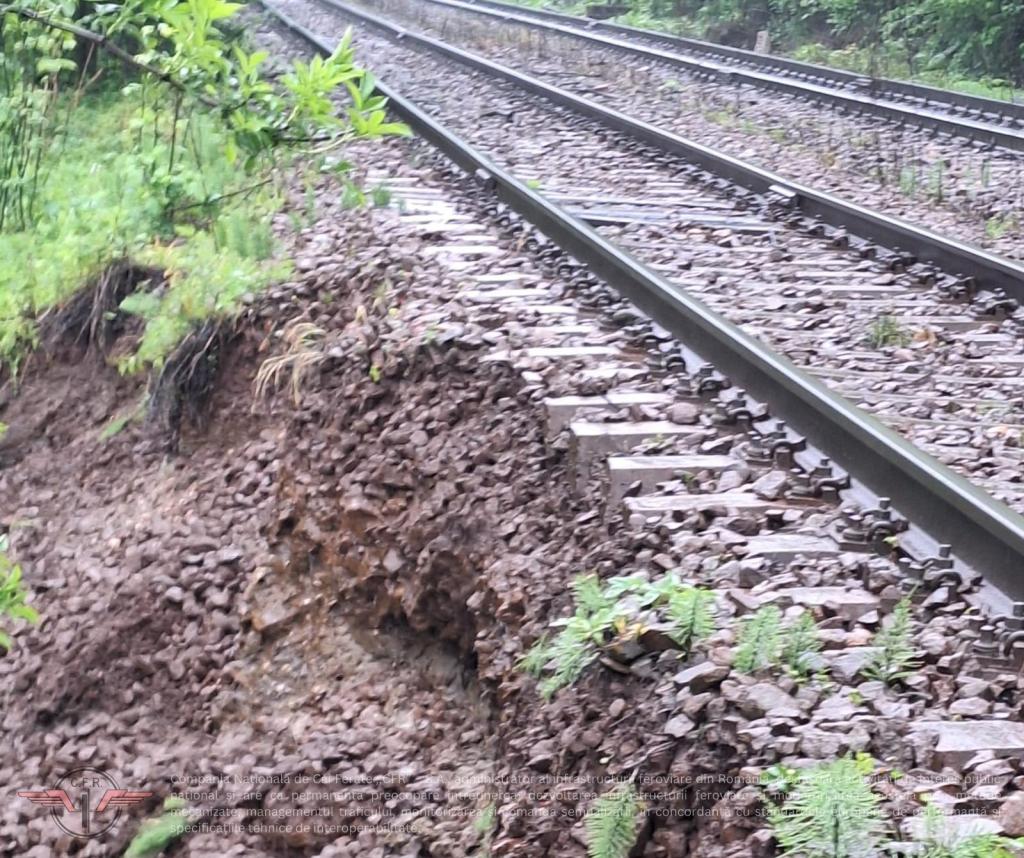 CFR SA informează că, din cauza precipitațiilor abundente, pe raza Sucursalei Regionale de Căi Ferate Brașov, s-a produs o alunecare de terasament între stațiile Predeal și Timișu de Sus, pe firul I de circulație, la kilometrul feroviar 152+550 – 152+590.