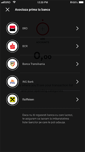 Pașii pe care trebuie să îi faci sunt cât se poate de simpli: instalezi aplicația MyBRD Mobile, adaugi celelalte bănci în listă și după poți vedea soldurile și tranzacțiile de la fiecare bancă, precum și cheltuielile împărțite pe categorii.