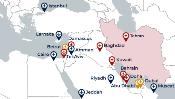 ULTIMA ORĂ: Harta aeroporturilor de unde se zboară din Orientul Mijlociu