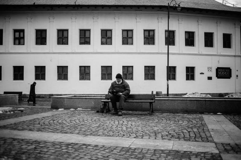 L-am cunoscut pe Radu acum două luni,. Se adăpostea la „hotel”, o clădire abandonată pe malul lacului Floreasca. Scări întunecate, acoperite de fecale, betoane, unghiuri drepte, plastic colorat în apă, sunetul șobolanilor căutând de mâncare. Se aflau acolo, însă, patru saltele, o adevărată binecuvântare pentru boschetarii (așa cum își spun ei) obișnuiți să doarmă pe scândurile tari ale băncilor. Ne-am întâlnit două săptămâni mai târziu pe holurile de laSamusocial, un ONG care sprijină oamenii fără adăpost din București. Am vorbit aproape jumătate de oră și m-a surprins tonul lui blând, liniștit, un pic stingher, neașteptat pentru fizicul de fost jucător de rugby. „Nu prea sunt obișnuit cu viața asta”, mi-a spus. „Nu-i a mea, în primul rând. Nu sunt făcut pentru așa ceva. Alții se mândresc cu 25 de ani de boschetărie.”