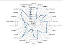 Graficul e in stanga, cu observatia ca punctele mai aproape de centru reprezinta un nivel scazut al bunastarii. Cu cat esti mai la “periferie”, esti mai “fericit”, avand un raport PIB/capita mai ridicat.