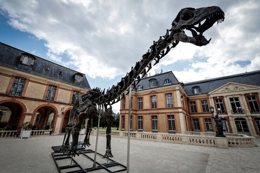 Scheletul gigantului erbivor, care ar fi cântărit în jur de 20 de tone și despre care se crede că a atins vârsta de 45 de ani, a fost ținut peste vară în sera castelului din Dampierre-en-Yvelines, la aproximativ 50 de kilometri sud-vest de Paris, unde a avut loc licitația.
