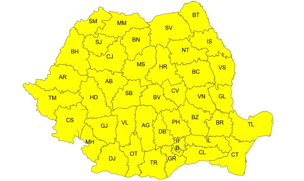Luni, până la ora 20, va fi valabil un cod galben pentru temperaturi deosebit de scăzute și ger în cea mai mare parte a Moldovei și Transilvaniei, în Dobrogea, în sudul, centrul și estul Munteniei, precum și în sudul Olteniei. Aici, se vor înregistra temperaturi deosebit de scăzute (în medie cu 5…9 grade mai mici decât cele normale pentru această dată), cu valori ce se vor încadra în general între -8 și -4 grade.
