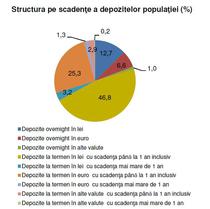 Atat la depozitele in lei, cat si la cele in valuta, ponderea cea mai mare este detinuta de depozitele cu scadenta sub 1 an, mentinandu-se preferinta populatiei pentru plasamentele pe termen scurt. Avand in vedere climatul economic dificil si prelungirea starii de nesiguranta a locurilor de munca, prudenta se mentine, la fel ca in trimestrele anterioare, printre principalii factori care au contribuit la cresterea economiilor populatiei. De asemenea, pe fondul crizei datoriilor de stat, se constata o crestere a aversiunii fata de risc a investitorilor, care are ca efect reorientarea plasamentelor acestora spre instrumente financiare cu risc scazut, printre