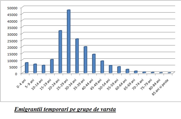 Pe grupe de varsta, tinerii sau cei cu varste intre 15 si 24 de ani si-au redus ponderea in numarul total al emigrantilor, de la 22,3% in 2007 la 17,0%. Grupul de varsta 25-i 44 s-a mentinut relativ constant. Mai jos aveti un grafic al celor care pleaca temporar la munca in strainatate, dupa grupa de varsta.