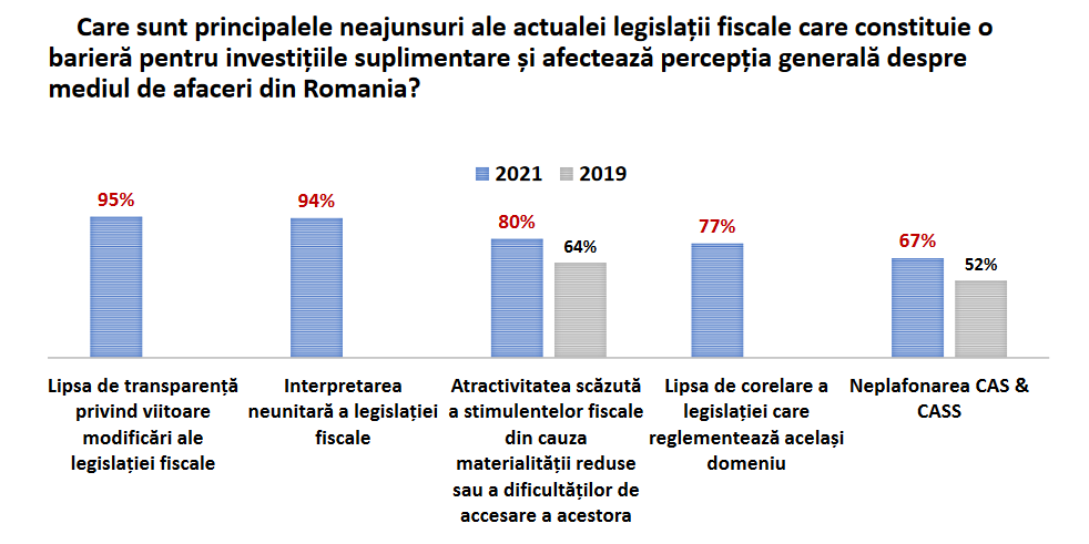 • Lipsa de transparență și predictibilitate în plan fiscal constituie o barieră reală pentru investiții suplimentare
