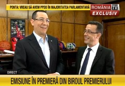 Premierul Victor Ponta i-a prezentat lui Victor Ciutacu (Romania TV) „trofeele” din biroul sau, seful guvernului laudandu-se si cu o racheta de tenis primita de la Simona Halep. „Sunt convins ca unii vor comenta acum”, a declarat seful guvernului.