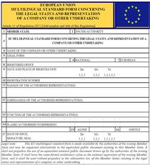 Propunere de formular multilingv facultativ privind statutul legal al unei companii