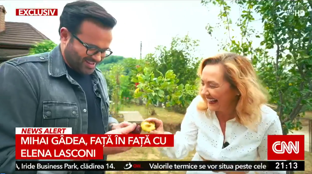 VIDEO Elena Lasconi, interviu cu Mihai Gâdea: A ciocnit o prună cu vedeta Antenei 3 și i-a prezentat cățelușa Hermesina. „România e super pregătită pentru un președinte femeie”
