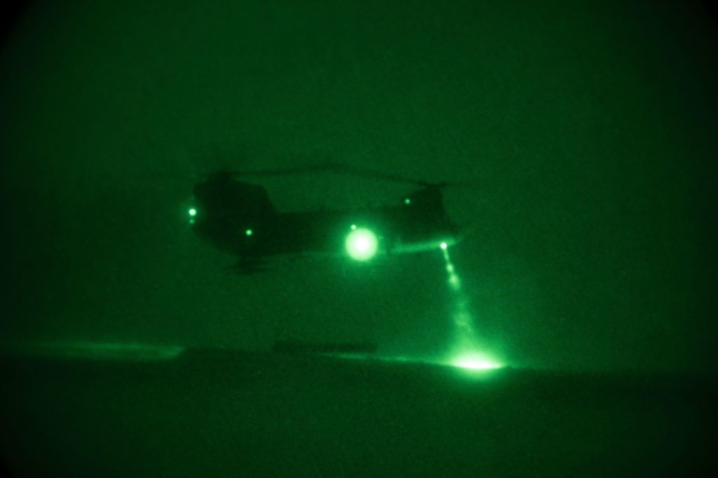 Alte înregistrări arată ceea ce par a fi elicoptere multirol MH-60s și MH-47.