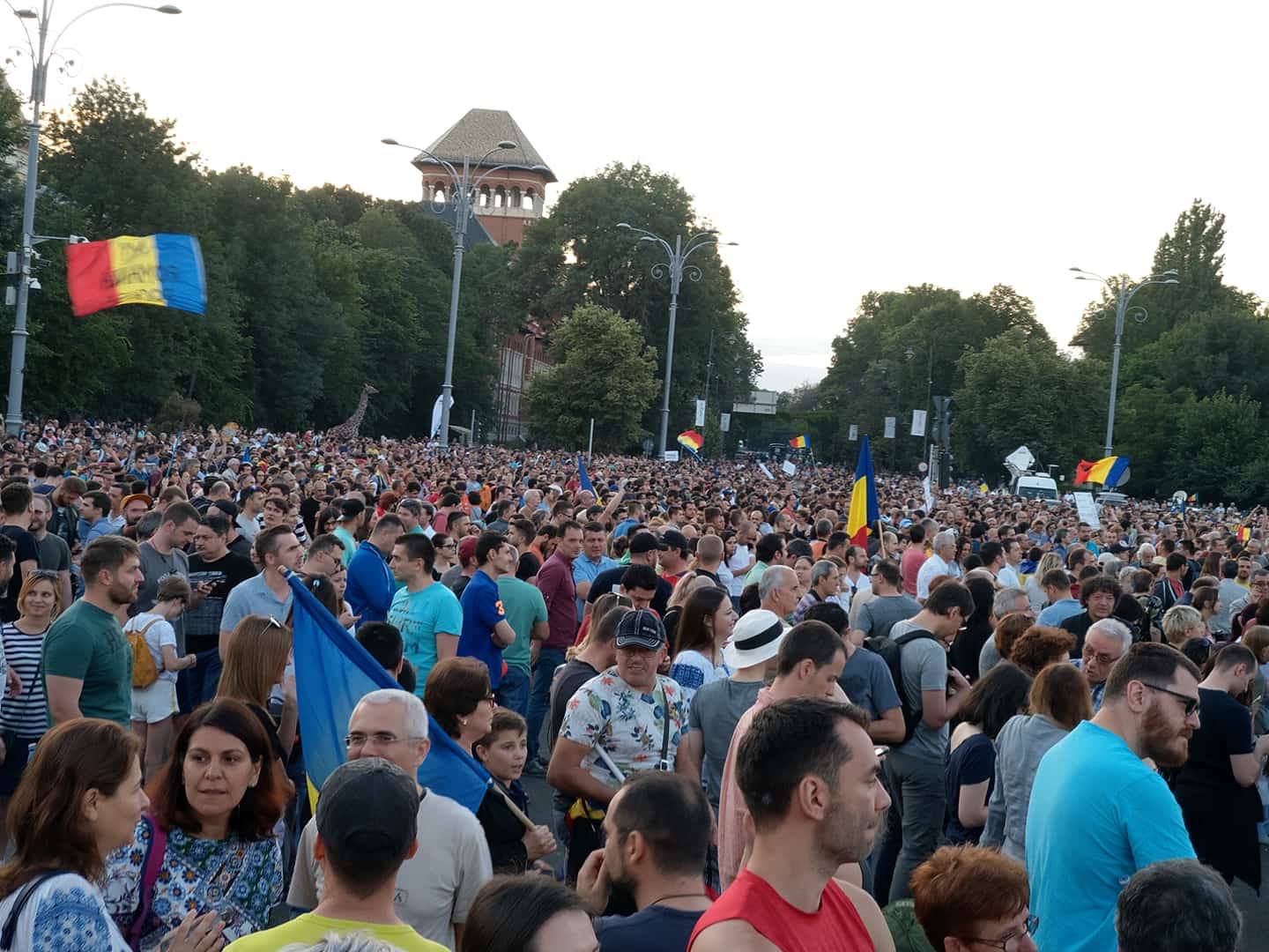 19.06 Peste 1.700 de persoane în Piața Victoriei. Mulțimea ocupa mare parte din centrul Pietei, o suprafață de circa 2.500 de mp. Multe persoane sunt în continuare pe trotuarul de la Antipa, câteva sute de persoane. Lumea vine în continuare în număr mare.