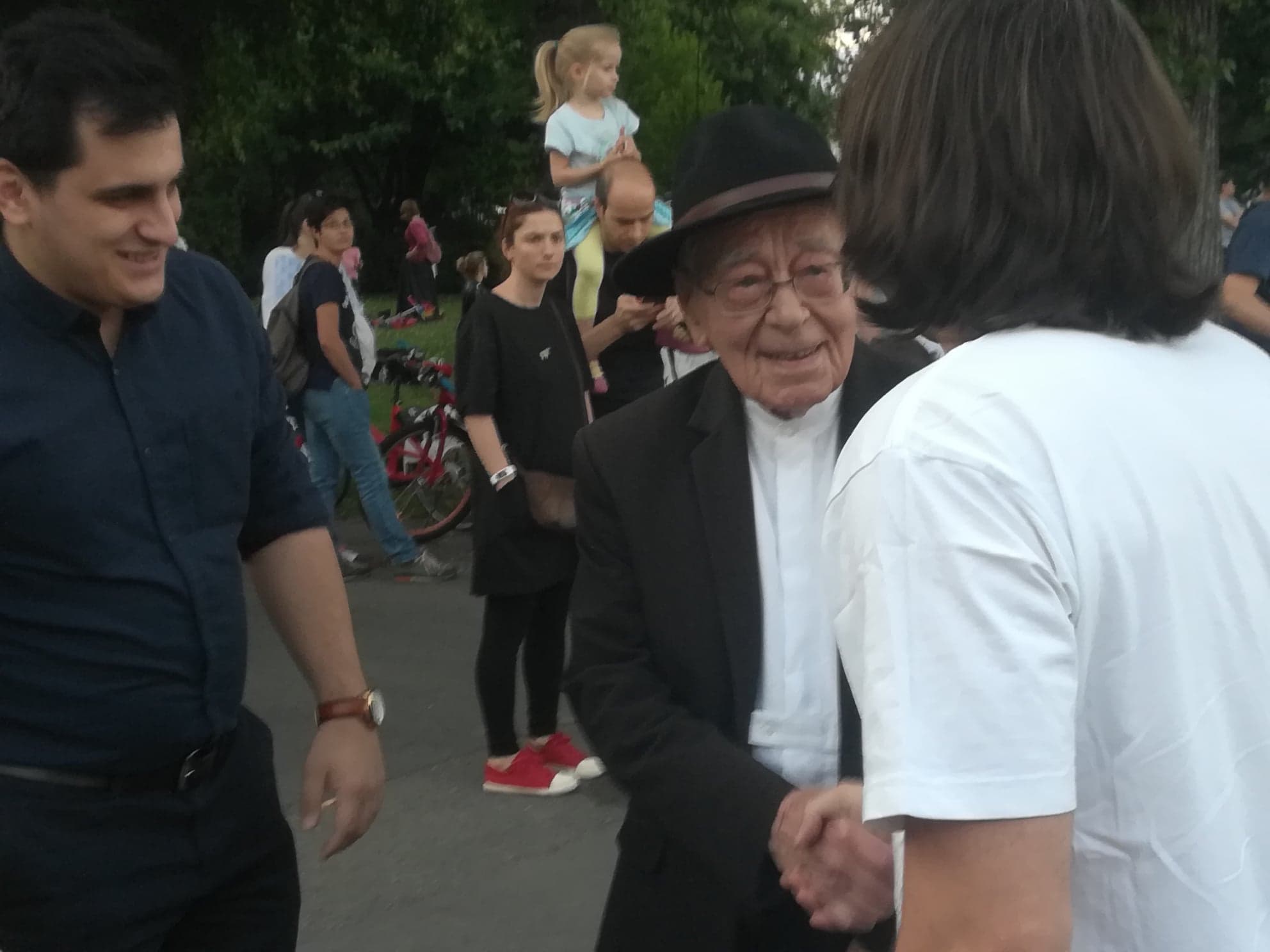 20.55 Mihai Șora, filosoful de 101 ani ce este un obișnuit al protestelor, a venit și el în Piața Guvernului, oamenii vorbesc cu el și fac fotografii împreună cu el. Cei din jur îl aplaudă.