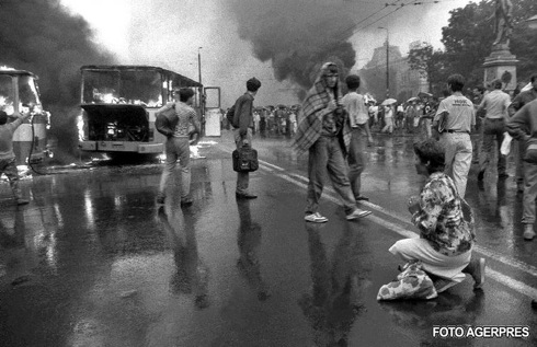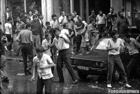 Cateva ganituri de mineri pleaca din Valea Jiului si ajung in Bucuresti unde, timp de doua zile, recurg la acte de o violenta extrema impotriva protestatarilor, al studentilor si al oricarei persoane suspecte ca „submineaza democratia”. Minerii, condusi de Miron Cozma, au atacat si devastat sediile partidelor istorice si ale ziarului Romania Libera, agresand mii de bucuresteni pentru simplul fapt ca erau studenti, purtau ochelari si barba sau se aflau in cladirea Universitatii. Pe 15 iunie, miile de mineri au fost stransi la Romexpo, unde presedintele Ion Iliescu le-a multumit pentru „atitudinea de inalta constiinta civica„.