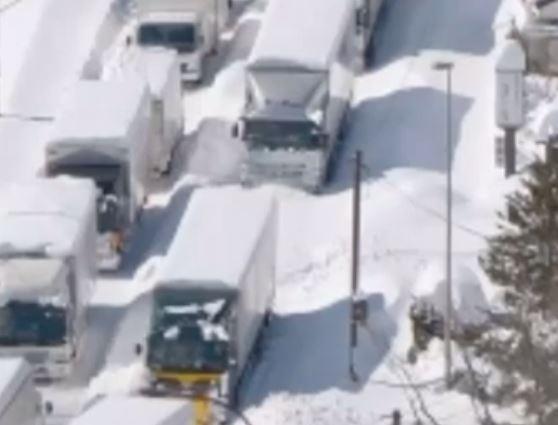 Blocajul a început după ce o mașină s-a blocat în zăpadă adâncă în mijlocul autostrăzii, stopând traficul, potrivit companiei Nippon Expressway Company (NEXCO), operatorul de autostradă al țării.