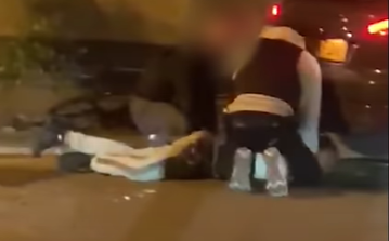 Un membru al publicului a filmat incidentul în timp ce poliția îl arestează pe tânăr, care era cu bicicleta împreună cu alți doi.