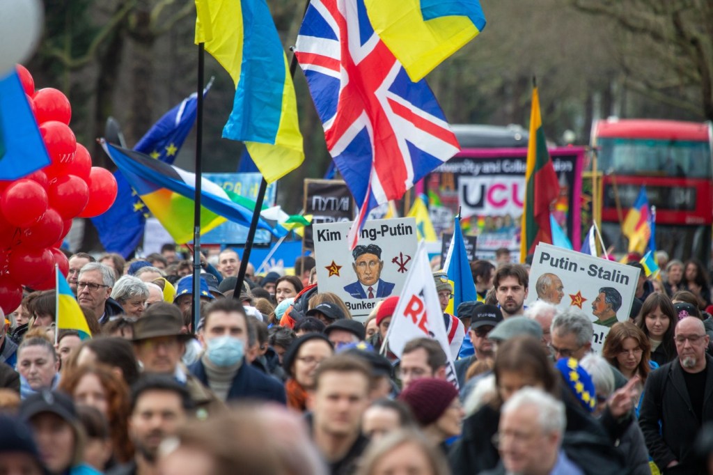 Sute de persoane s-au adunat sâmbătă la Londra în sprijinul Ucrainei, la aproape trei ani de la începutul invaziei Rusiei în această ţară şi pe fondul unor tensiuni puternice între Washington şi Kiev, relatează France Presse și Agerpres.