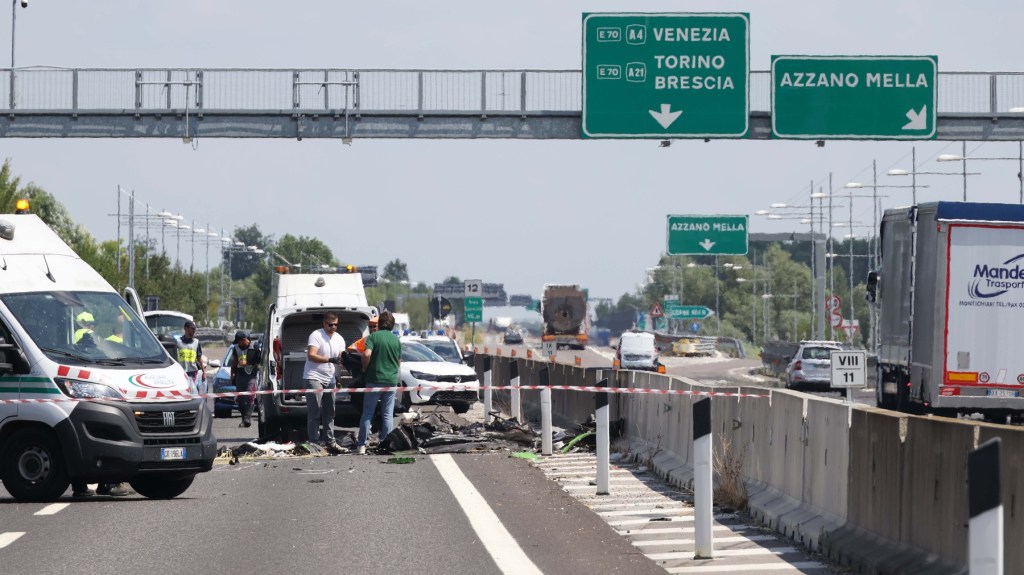 VIDEO Momentul în care un avion se prăbușește în mijlocul unei autostrăzi, printre mașinile care circulau, în Brescia