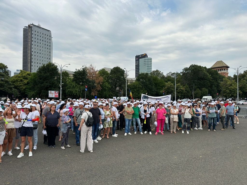 Salariaţi din mai multe instituţii de stat, precum Agenția pentru Plăți și Intervenție în Agricultură, Agenția pentru Finanțarea Investițiilor Rurale și Ministerul Investițiilor și Proiectelor Europene, protestează, marţi, în Piaţa Victoriei, faţă de măsurile fiscale din primul pachet stabilit de Guvernul Bolojan, ei cerând să nu le fie reduse sporurile.